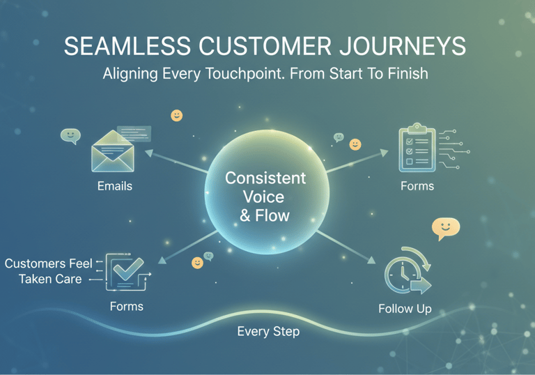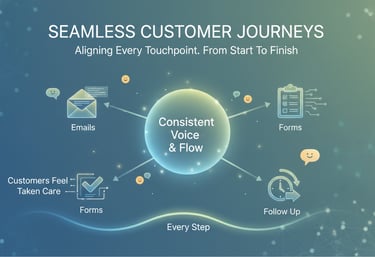 We review your touchpoints, from emails to forms to follow up, and align them with a consistent voice and flow, so customers feel taken care of at every step.
